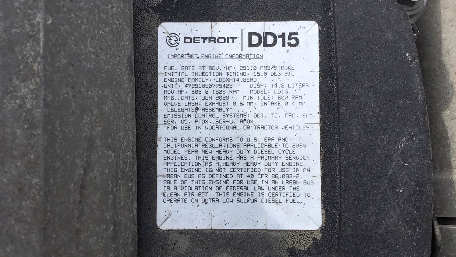 | Engine model | DD15 EPA 17 |