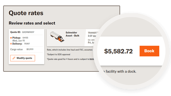 Get access to over 21,000 carriers that meet Schneider's qualification requirements, with reliable capacity from Schneider‘s asset fleet. Quote your freight online instantly, 24/7, whenever you need it.